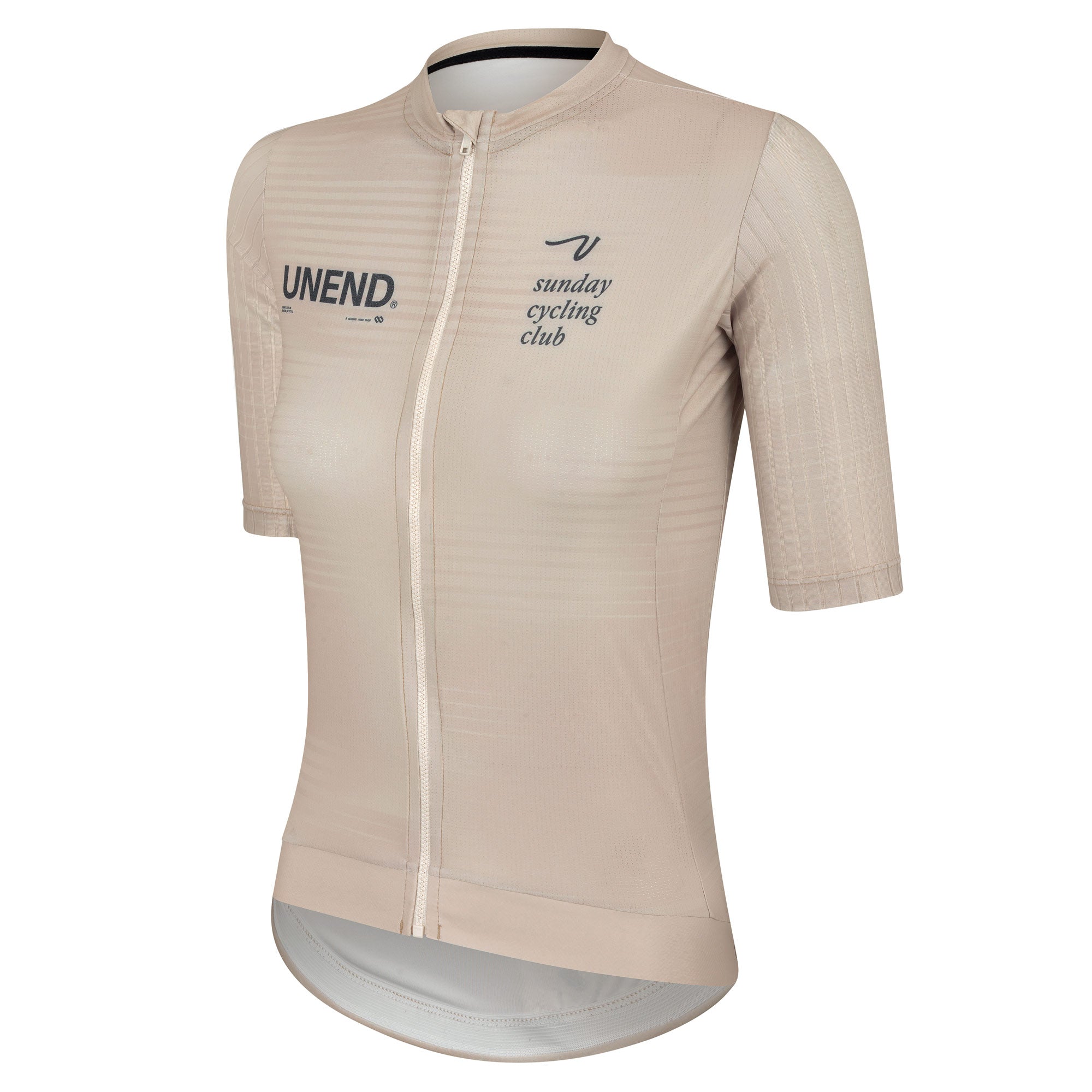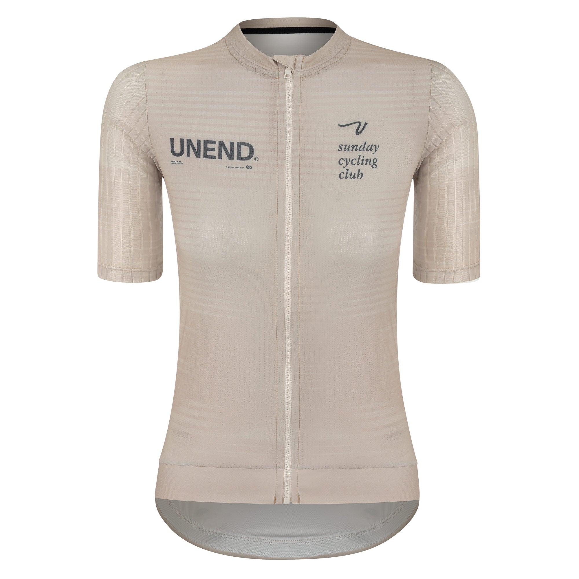 A jersey utiliza três tecidos: nas costas tecido com proteção UV e elasticidade na medida certa, na frente tecido com micro furos que permitem uma troca de calor otimizada e nas mangas tecido AERO, texturizado para melhor desempenho aerodinâmico